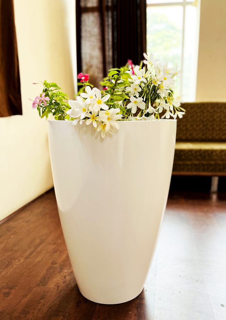 The Cone FRP Planter is a modern minimalist’s dream. With its clean, tapered design and glossy white finish, it fits beautifully in contemporary homes, office lobbies, and entryways. Made from premium-grade FRP, it’s both lightweight and highly durable – ideal for large plants and statement greenery.